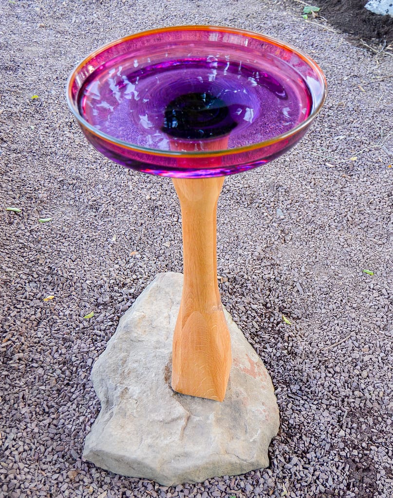 A gorgeous birdbath which caught our eye just a few steps into the entrance of the garden gates with its lovely colors reflecting the palette of a deep sunset. We asked Nate to elaborate on the process of creating such a unique piece and his collaboration with our hotshot studio manager Scott.