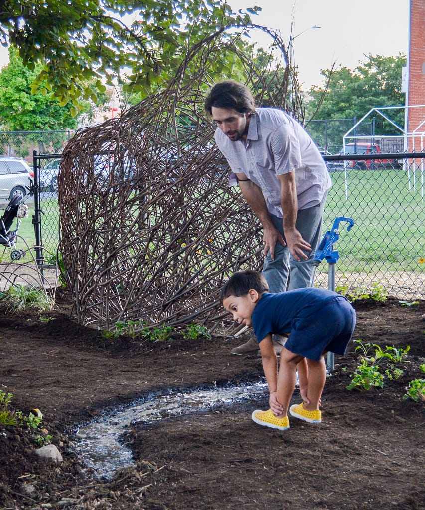 “Thatās a good question. Practically speaking, what I would really like to do is get people to think differently about how we bring nature into our daily lives and into creative spaces. When all of this comes together itās going to look like a woodling edge with a creek, and one hundred percent native species; really bringing an experience with an ecosystem into our life and doing it at a scale that is very accessible. On a personal and emotional level, I think the biggest thing I want people to take away is the sense of enchantment and a sense of wonder and a sense of playfulness. The elements that Iām bringing into this space are kind of whimsical in a generational kind of way, kids come in and want to make mud pies and jump into a muddy ditch and ho on logs; thereāsĀ a reconnection with your inner child that kind of kindles when youāre walking through woods or a meadow, that is possible on a small scale and possible to connect the space to people’s daily lives.”