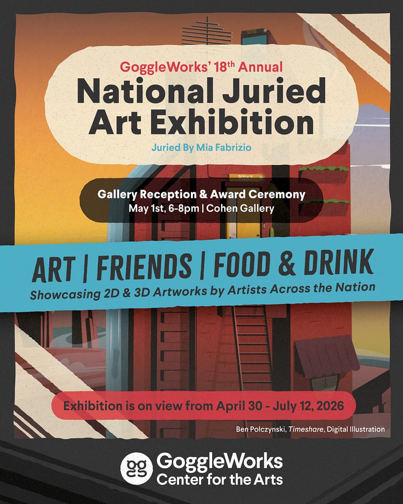 📅 Viernes, 1 de mayo de 2026 🕕 18:00 – 20:00 📍 GoggleWorks for the Arts Celebra la inauguración de GoggleWorks18.ª Exposición Anual con Jurado GoggleWorks, una dinámica muestra de obras de arte contemporáneo de artistas de todo el país. Comisariada por la artista interdisciplinar Mia Fabrizio, esta exposición destaca una amplia variedad de perspectivas, medios y voces creativas. Únete…