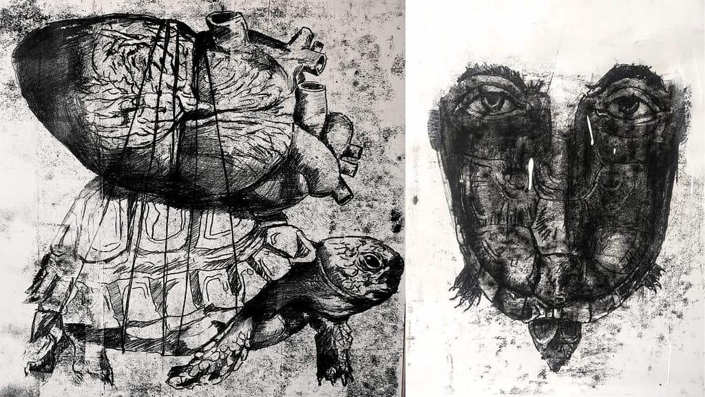 His recurring protagonist–the turtle–symbolizes the ostracism, immobility and narrowness constricting the soul of the Cuban people. The surrounding imagery might at times appear bleak, at other times chaotic.