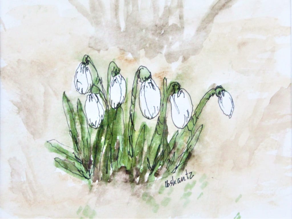 Just when you think winter will never end, in the middle of February, the snowdrops make their appearance. They will even hide under the snow. If you know where to look, if you pay attention and watch, you can see them when you would think there is only cold and death. Life has its seasons. Lupus is a relapsing and remitting disease. When I have more difficult times, I remember the snowdrops. The snowdrops inspire me to keep looking, even in those difficult times, for the beauty that lies hidden to those who don’t look. LornaBeth on Snowdrops, a piece she exhibited in My Disability Story