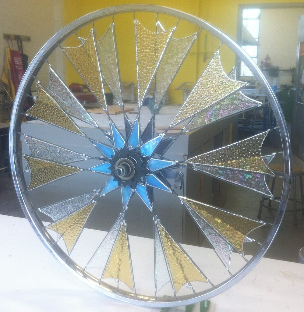 Emily Thiel, GoggleWorks Programs Coordinator and project organizer says, “Through upcycling old bicycle wheels, we are re-envisioning everyday objects. These wheels demonstrate the accessibility of art and hopefully will encourage the Reading community to tap into their own creativity.” This is in line with the GoggleWorks mission to educate and make art a huge piece of this community’s life. Not only has this event been exciting to organize, but the GoggleWorks Studio Artists have been having a blast with this project too. Most artists wanted to get involved in this project and showcase their skills a completely different fashion.
