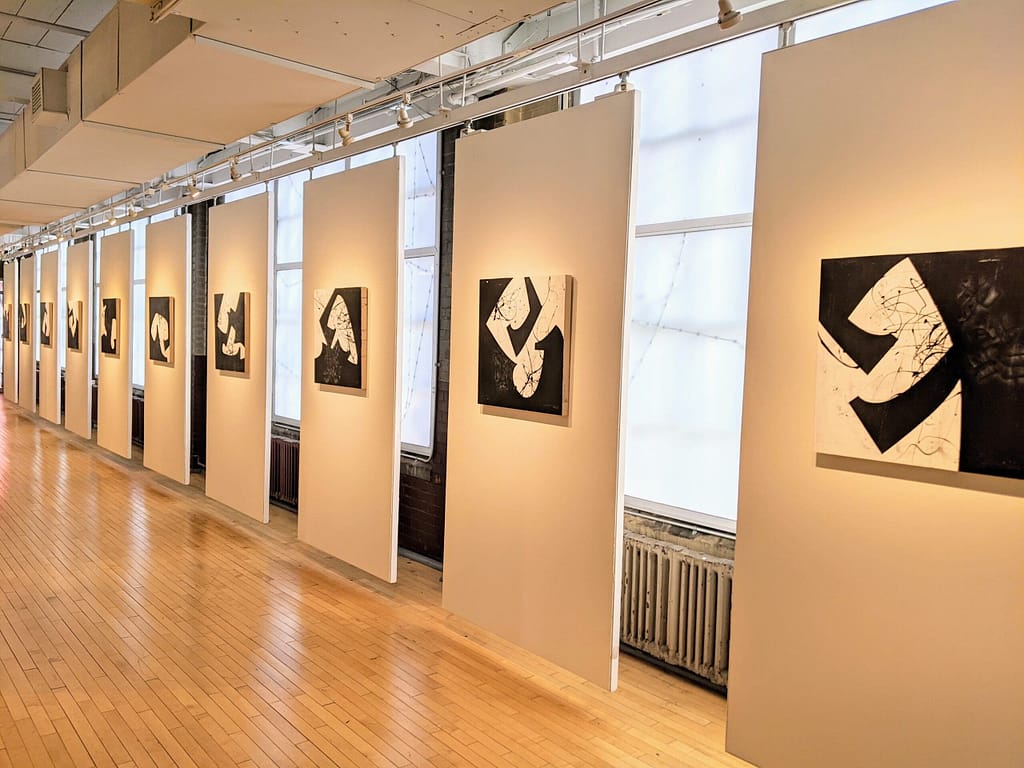 John Chang dreams in many worlds and brings back remnants. In his new works, people come and go yet no one is seen. The migrators leave their shadows in the air and their marks on the sidewalks. Their words and echoes float through storms of sharp, black fragments flying in all directions.