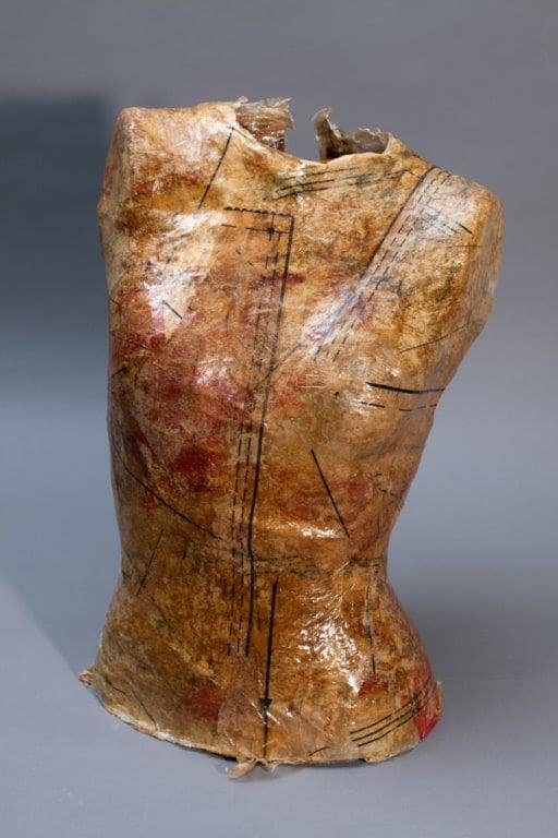 I started as a wearable fiber artist and am still committed to creating functional pieces. I’m equally interested in altering garments to create objects that reflect as well as defy societal norms and expectations, particularly of women. I am drawn to old garments that show evidence of the hand that created the piece as well as the person who wore it. These indelible marks—stitches, stains, mended holes, and spots rubbed almost bare by continual contact with the body—speak to the hours invested in the making of the garment as well as the years that have passed as it was worn, again and again.