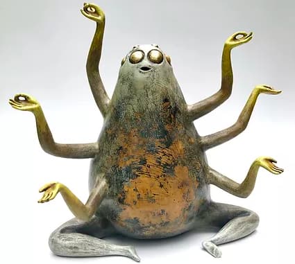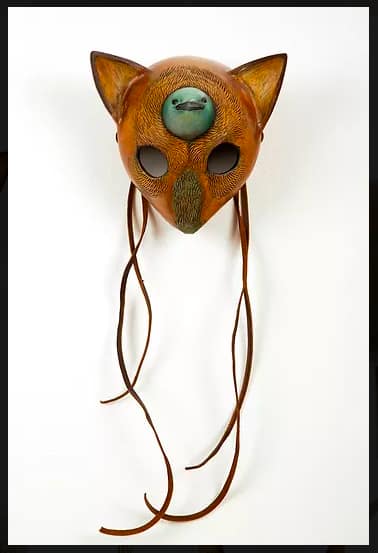 My work explores concepts like evolution, predator/prey relationships, and totemic imagery. Merging gourds, antler, bone, and horsehair with paper-clay, resin, and acrylics, I’ve been attempting to blend tribal aesthetics with a modern understanding of our place in the universe. I often reference elements of folk art and mythology, and enjoy the juxtaposition of bright patterns and ornamentation against raw materials and natural surface textures.