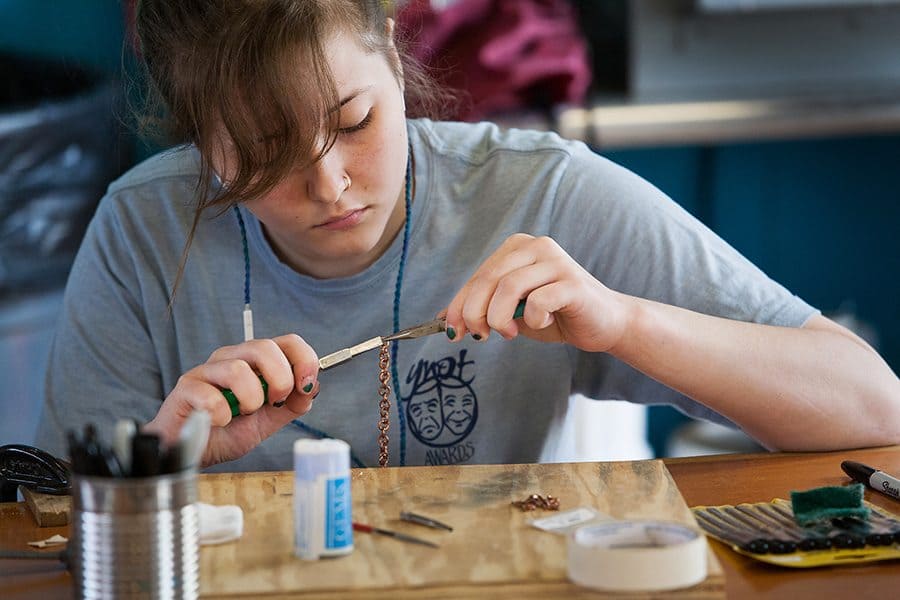 Our core curriculum in metals includes a 5-week introduction to the basics of metalsmithing. Intermediate level classes are offered for students interested in furthering their jewelry-making skills. Frequent special topic classes and workshops explore metalsmithing and jewelry techniques such as lapidary, lost wax casting, wire wrapping, enameling, and more.